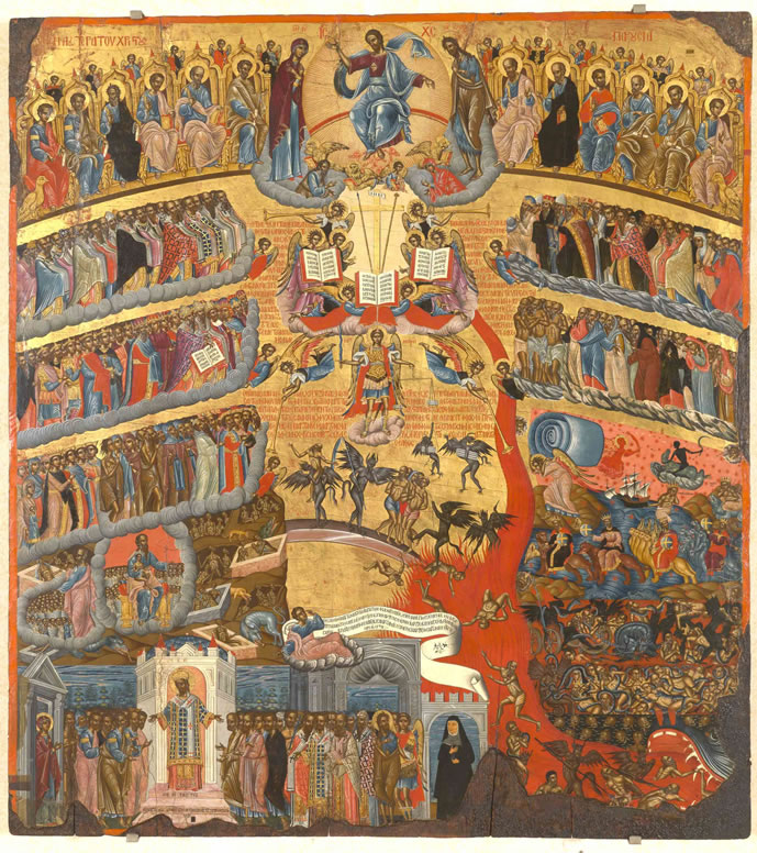 Ὅταν ἔλθῃς ὁ Θεός, ἐπὶ γῆς μετὰ δόξης, καὶ τρέμωσι τὰ σύμπαντα, ποταμὸς δὲ τοῦ πυρός, πρὸ τοῦ βήματος ἕλκῃ, καὶ βίβλοι ἀνοίγωνται, καὶ τὰ κρυπτὰ δημοσιεύωνται, τότε ῥῆσαί με, ἐκ τοῦ πυρὸς τοῦ ἀσβέστου, καὶ ἀξίωσον, ἐκ δεξιῶν σου με στῆναι, Κριτὰ δικαιότατε.